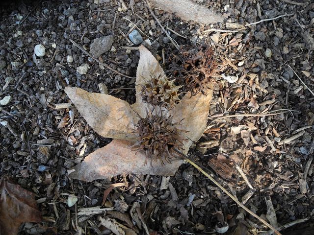 モミジバフウの葉っぱと実 近くの公園で見つけました。