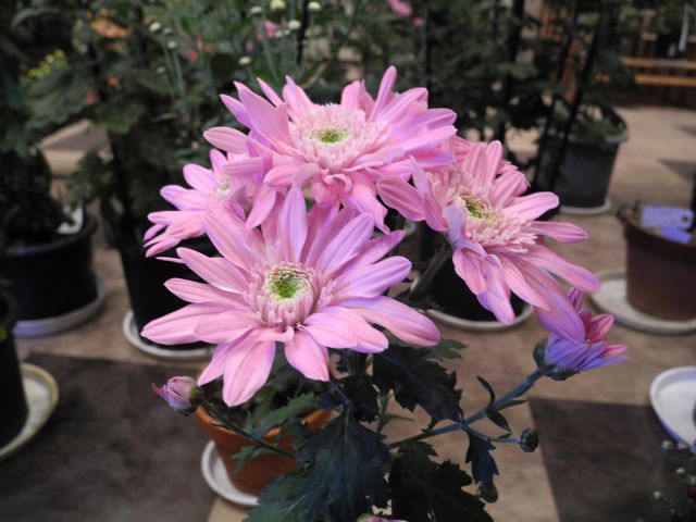 小さな菊花展で見かけたキク 品種名「幸福丸」