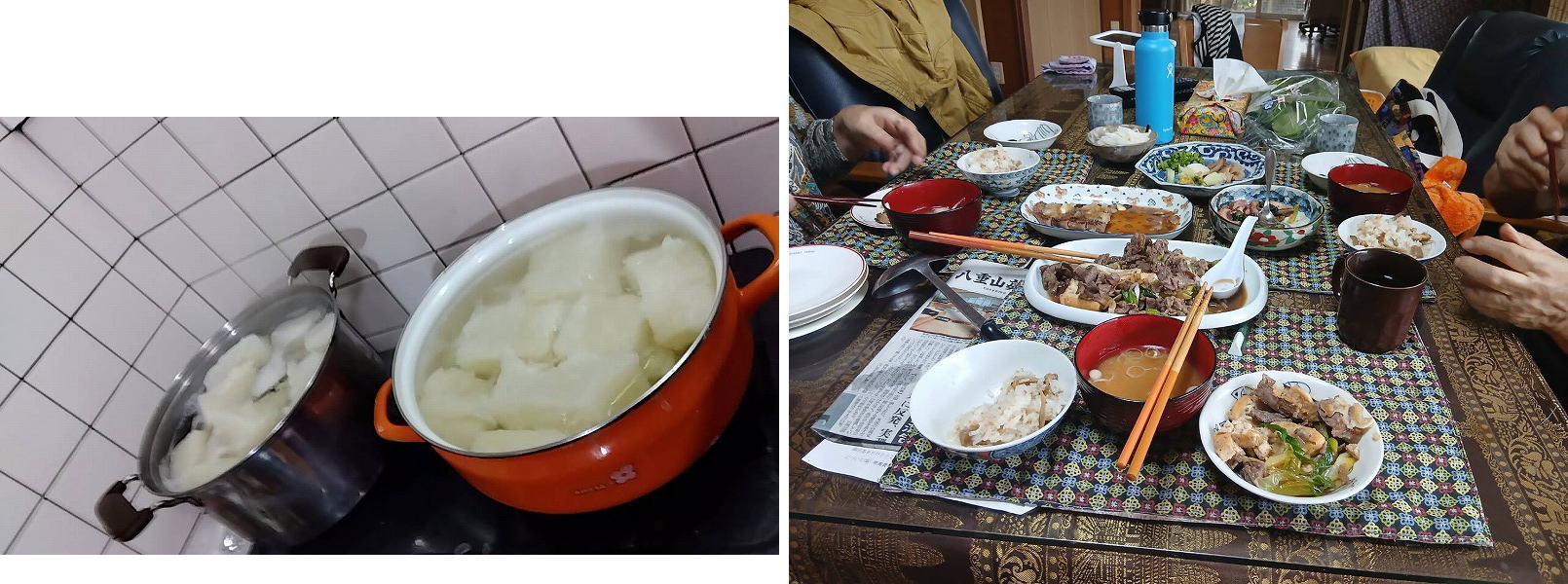 お友達がこんにゃく玉を娘さんから送って来たそうでこんにゃくを作って持って来てくれましたのでお昼はわが家でもう一人のお友達も呼んでお昼ご飯を食べました。 3時までお喋りをして楽しい一時でした。