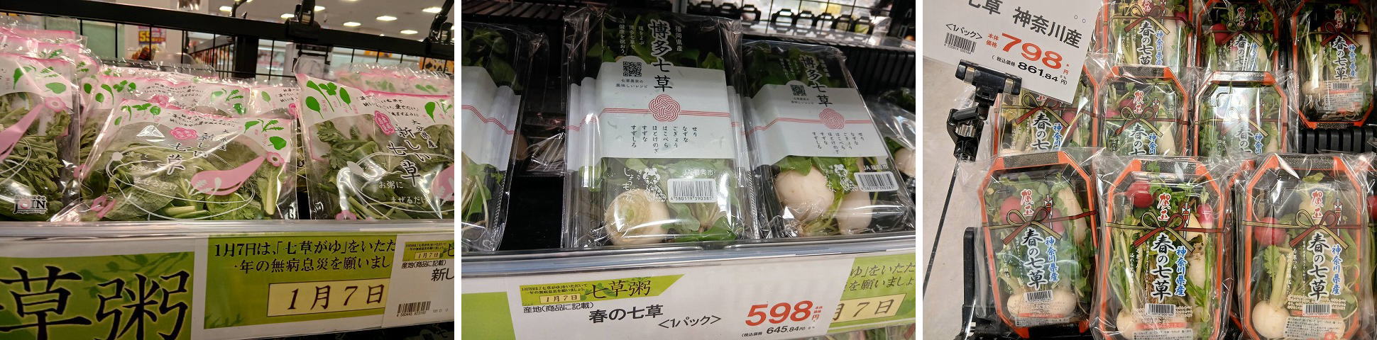 スーパーには七草粥の野菜が・・・・