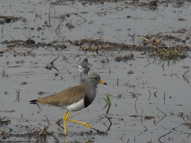 お蔭で、水が入り始めた田んぼでケリに出会えました。