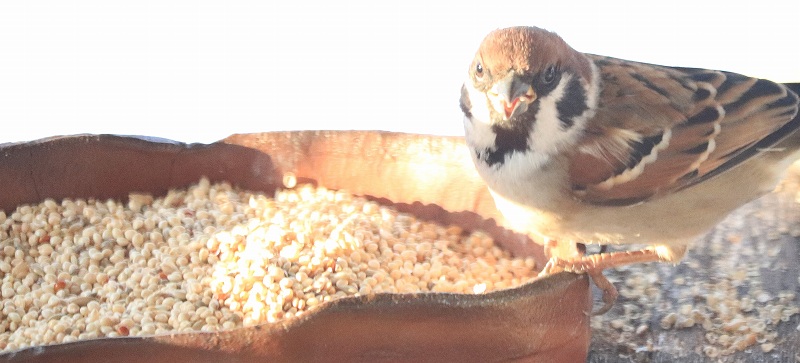 我家に飛来してきた雀の昼食時動画