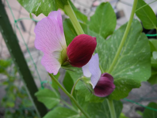 お友達から苗を頂いて育てている 赤花つるありエンドウの