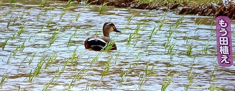 田植えが終わってカルガモがいました。