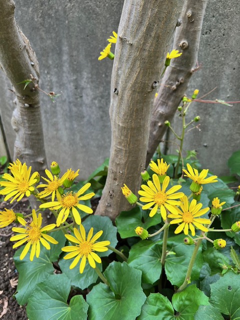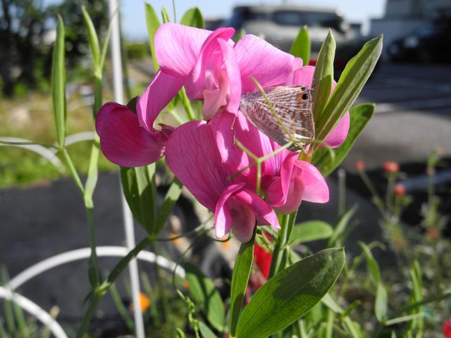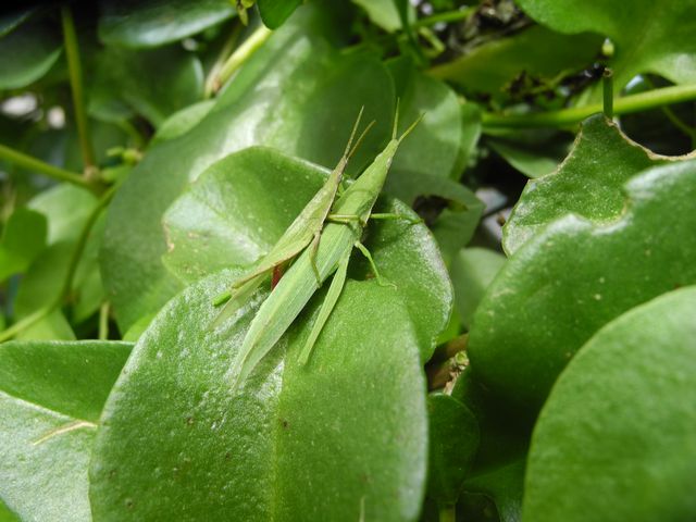 オカワカメの葉っぱにオンブバッタ 未だ元気そうでした。