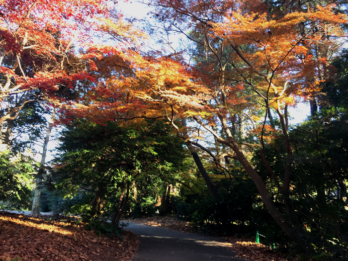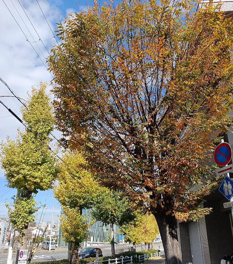 街路樹のケヤキとイチョウの紅葉が綺麗で