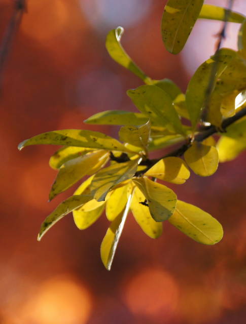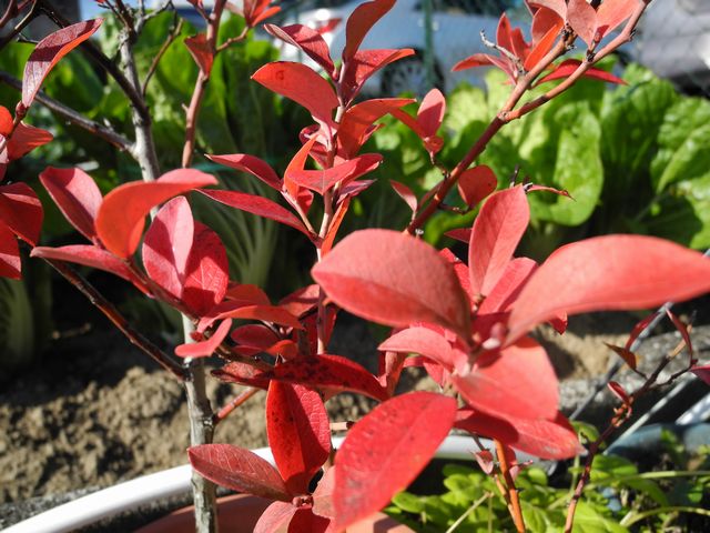 鉢植えのブルーベリーの葉っぱが綺麗に紅葉しています。