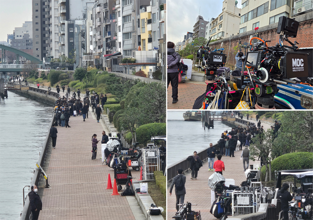 散歩の途中テレビドラマの撮影だそうで、現場にはたくさんの機材が並び、エキストラの方々も大勢いて、とても賑やかな雰囲気でした、