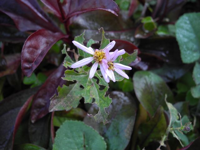 10年以上前に「ミヤコワスレ」って事で頂いた苗 何だか様子が違うと思っている内に、花が咲いて見たら 「ノジギク」でした。 根っこが、どんどん伸びて思わぬ所まで繁殖〜 狭い畑なので、昨年泣く泣く根を全部抜いてしまいました〜 が、残ってた所が有った様で、思わぬ所で花を咲かせています。 | |