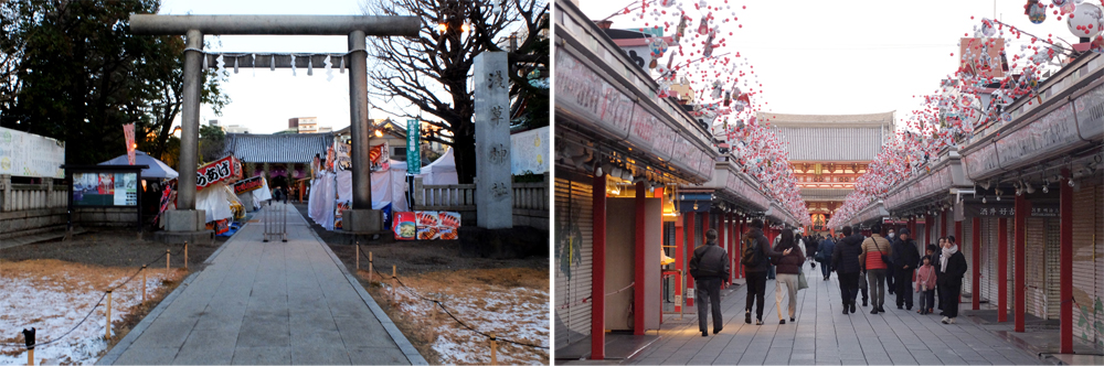 昨夜、初雪が降ったようで、今朝の浅草神社にもうっすらと雪が残っていました。
