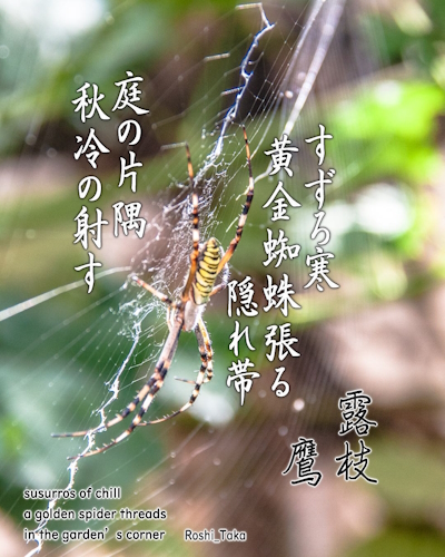 すずろ寒 黄金蜘蛛張る 隠れ帯
