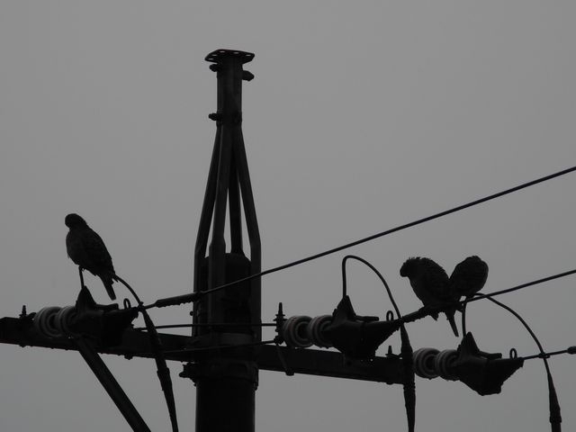 どんより曇り空 電柱にハトが3羽止まっていたのですが