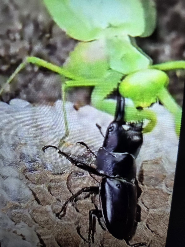 カマキリとカブトムシの戦い