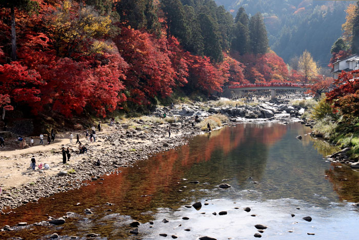 23日の日に岐阜からのバスツアーで愛知県豊田市にある香嵐渓へ今年も行って来ました。 3連休の中日で大変な混み様でしたが何とか頑張って撮って来ました。 今年の紅葉は今まで何度も行った中で一番綺麗でよかったです。 ここには4000本のモミジがあり東海一の紅葉の名所です。 今日はシンボルの待月橋のお届けです。 | |