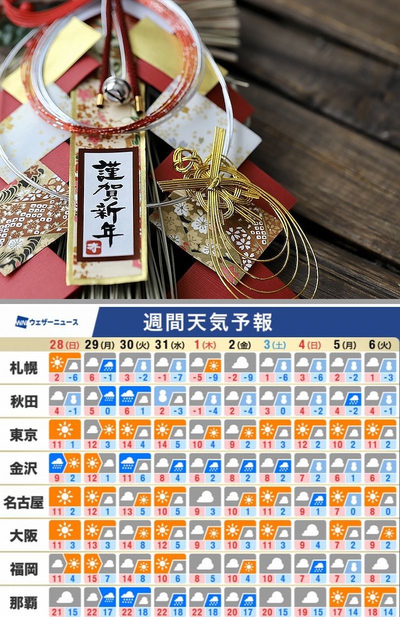 (29日・月)から30日(火)にかけては、気温がこの時季としては高めとなるものの、この先は気温の変化が大きく、大みそかになると北から寒さが戻るようです。