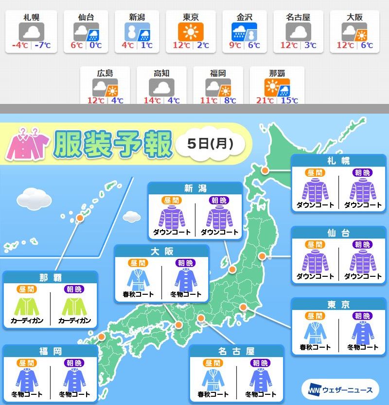 5日(月)から6日(火)は北海道の日本海側から北陸で雪が強まり、東北の日本海側で警報級の大雪となる恐れがあるとか。