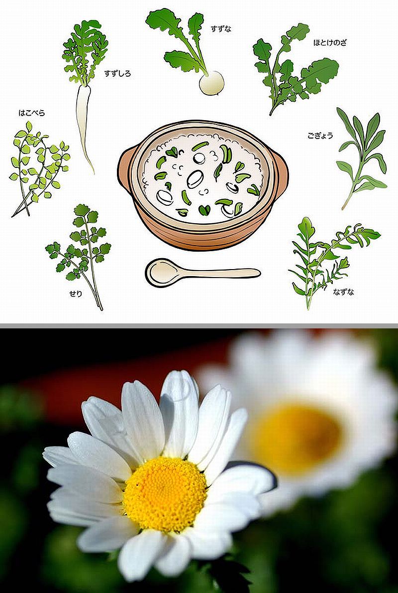 古代中国の「人の日」の風習に由来し、お正月の食べ過ぎで疲れた胃腸を休め、 冬に不足しがちなビタミンを補給する健康食です。