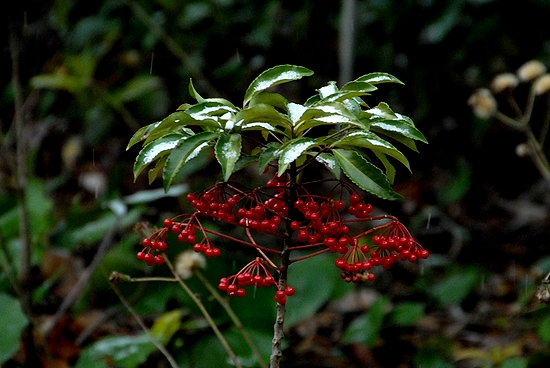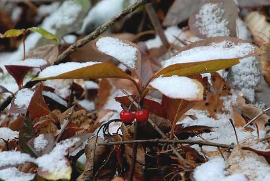 歩きながら、ふと目に留まったヤブコウジと、マンリョウの実です。