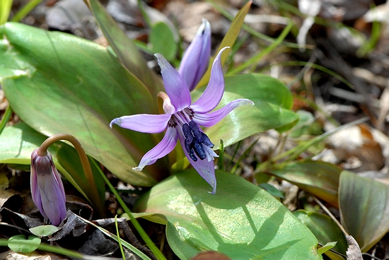 ハリコは、咲き出したカタクリです。 時間的にまだ早かったようで、満開の手前です。 |