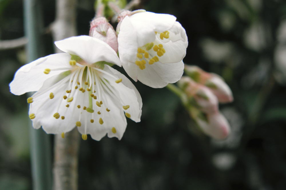 写真は我が家の挿し木して鉢植えの暖地用さくらんぼの花と