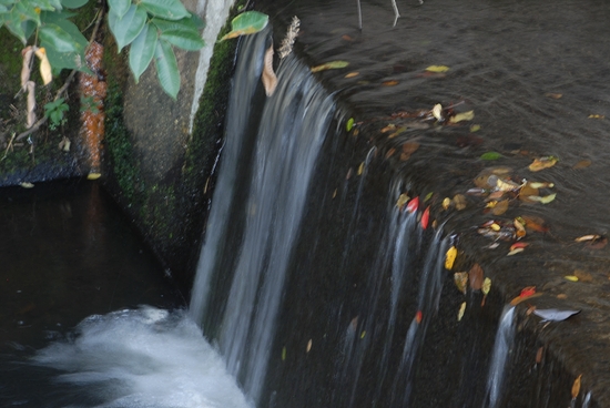 流れてくる落ち葉も、ちょっとカラフルになってきました。