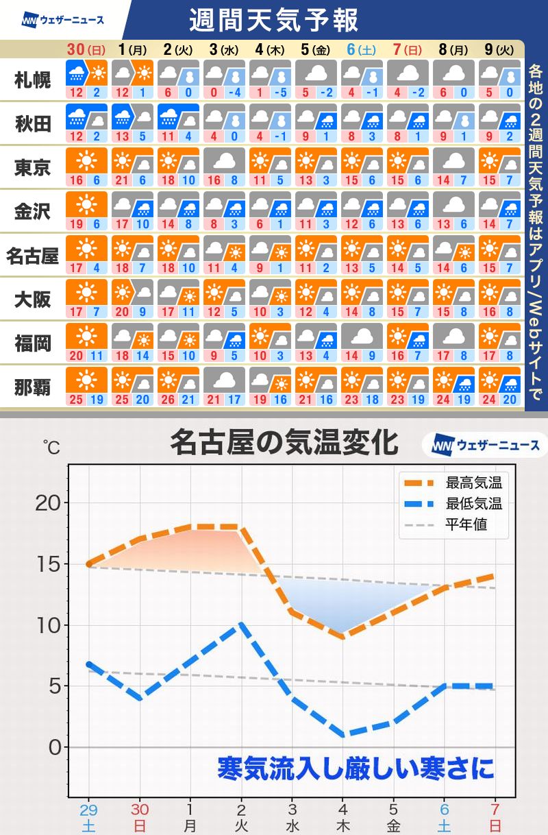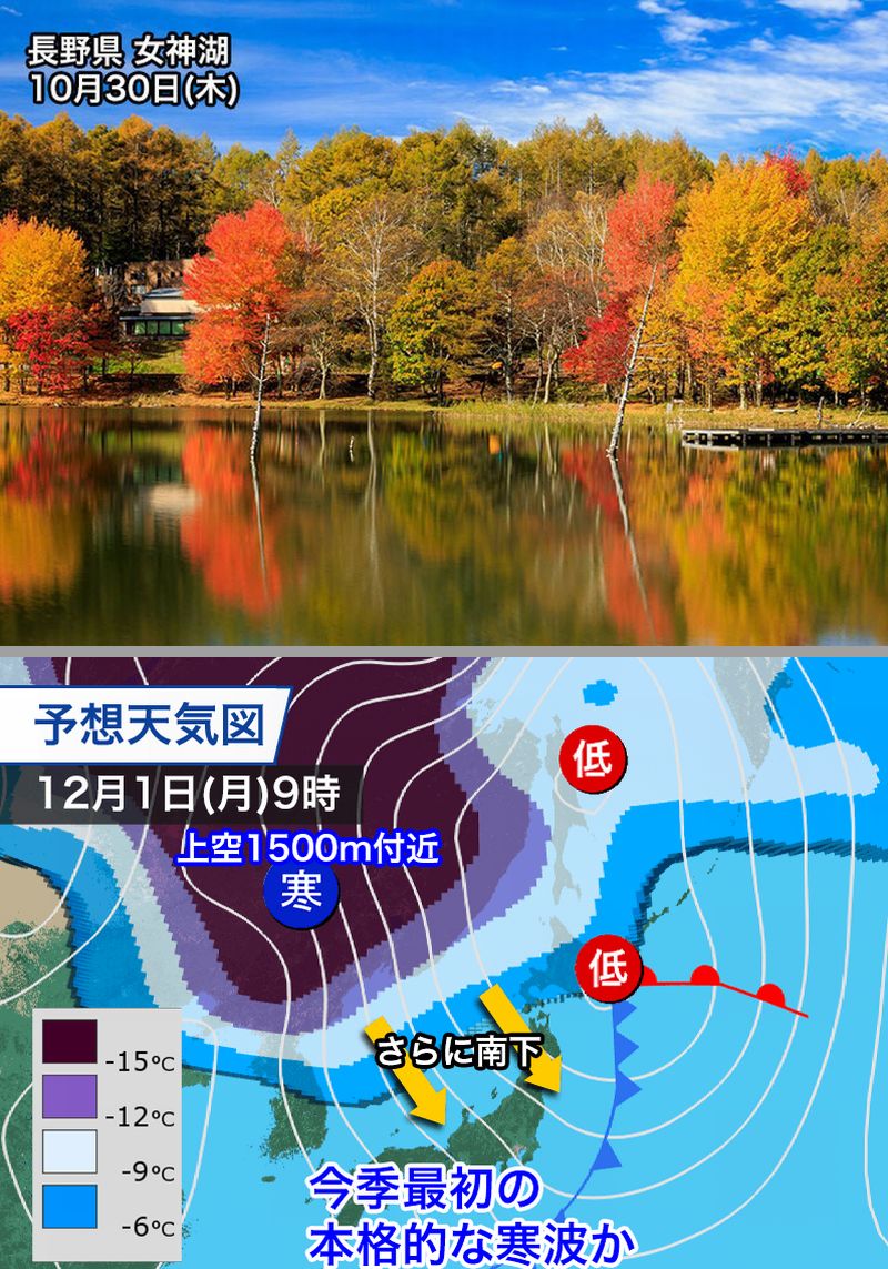 ・来週後半は全国的に平年より寒いの予想が出ています。