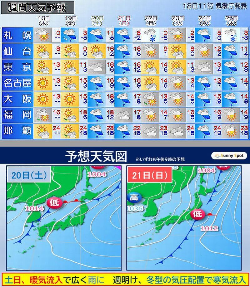 どうも土日は雨、クリスマスも広く雨に ・・ホワイトクリスマスになる所は・・