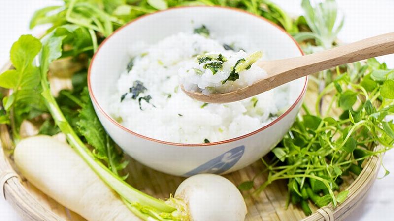 古代中国の「人の日」の風習に由来し、お正月の食べ過ぎで疲れた胃腸を休め、 冬に不足しがちなビタミンを補給する健康食です。