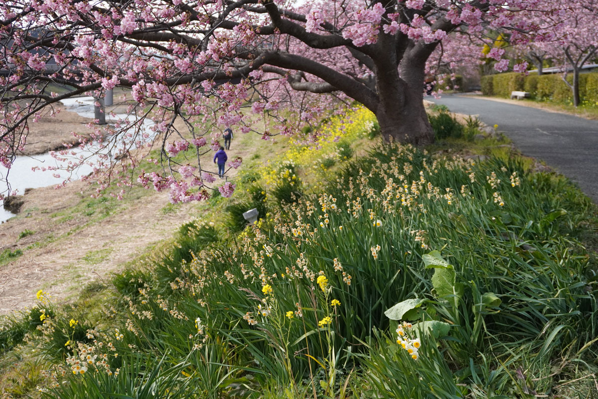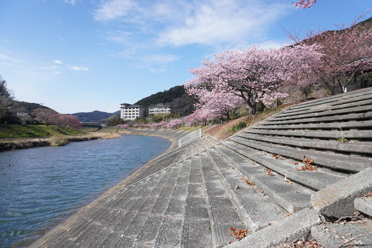 青野川沿いに咲いていた河津桜