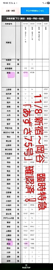 ◆鉄道の「時刻表」の下部まで長い画面を、スマホの「スマホのスクリーショット」で、下部まで全部撮影しました。