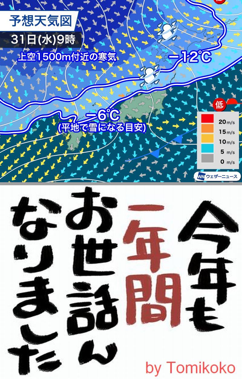 寒気襲来、正月は気温が下がりそうですね。