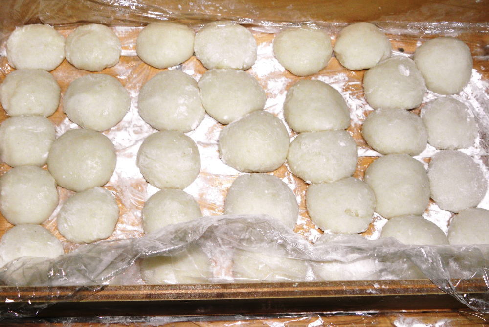 写真は正月用のお餅を餅つき機で丸餅と切り餅用をつくったものです。