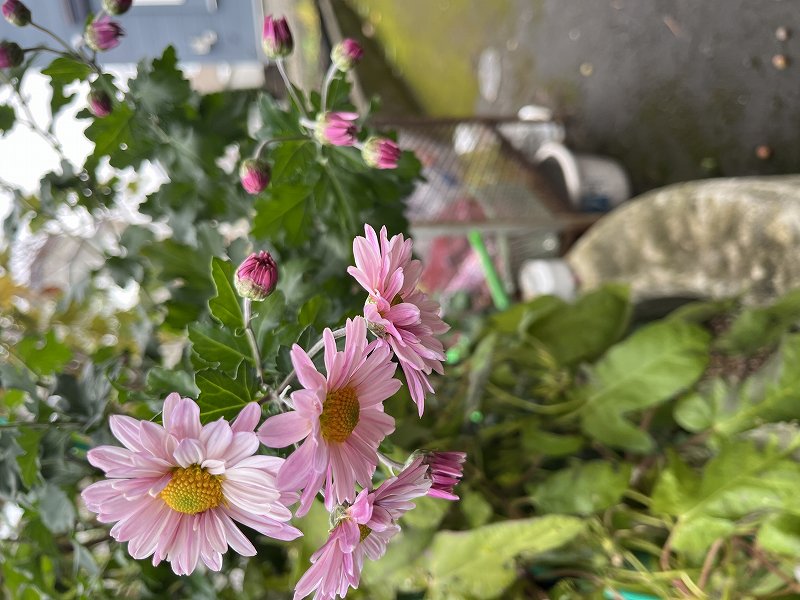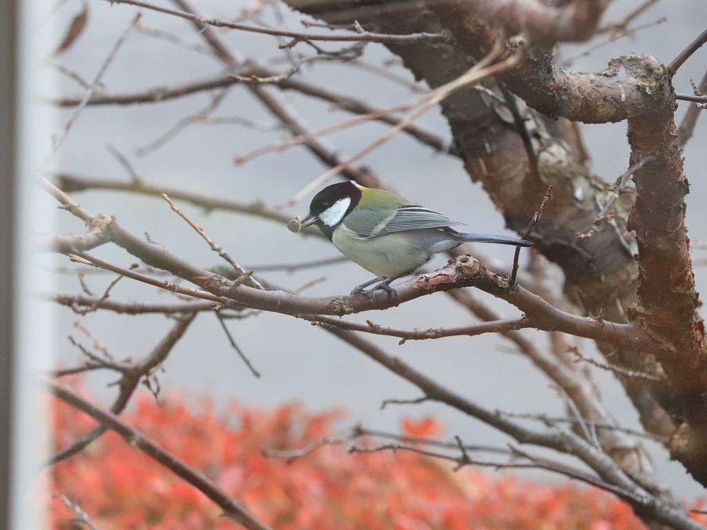 花も菊の花のみになりました。シジュウカラが飛来してきて慰められています。